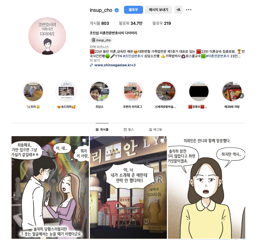 1. 조인섭 이혼전문변호사의 다이어리 (인스타그램)
